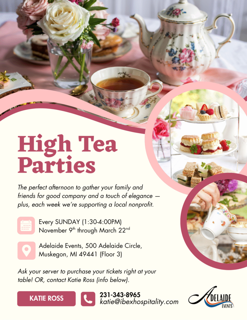 Spend a relaxing Sunday afternoon with friends and family at our elegant High Tea Parties. Enjoy fine teas, savory bites, and sweet treats — all while supporting a local nonprofit each week.